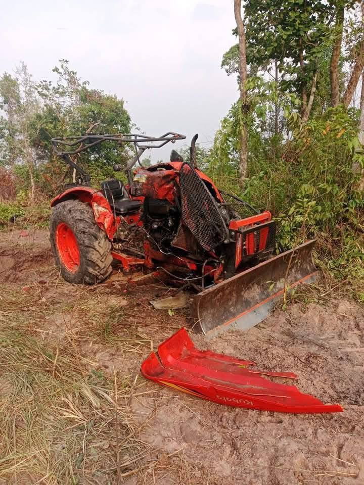 ព្រះវិហារ ៖ បុរសម្នាក់ខណៈដែលកំពុងបើកត្រាក់ទ័រភ្ជួរដីដាំដំឡូង ស្រាប់តែជាន់ប៉ះមូនតោន បណ្តាលឱ្យផ្ទុះកក្រើកដី រងរបួសធ្ងន់ ត្រាក់ទ័រខូចខាតទាំងស្រុង កាលពីវេលាម៉ោង៣និង២៦នាទីរសៀល ថ្ងៃទី២៩ ខែមីនា ឆ្នាំ២០២៥ នៅភូមិសែនជ័យ ឃុំស្រអែម ស្រុកជាំក្សាន្ត ខេត្តព្រះវិហារ ។
