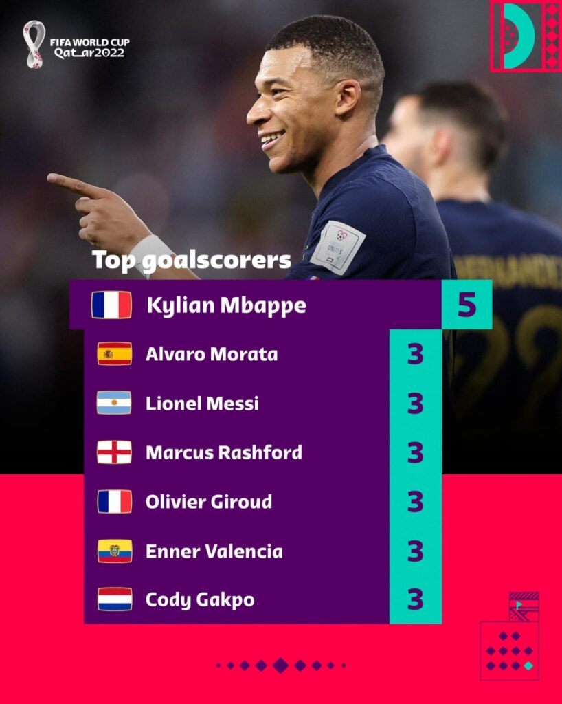 – Kylian Mbappe (បារាំង) ៥គ្រាប់
