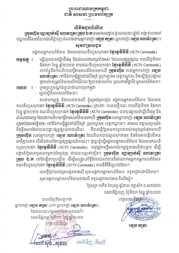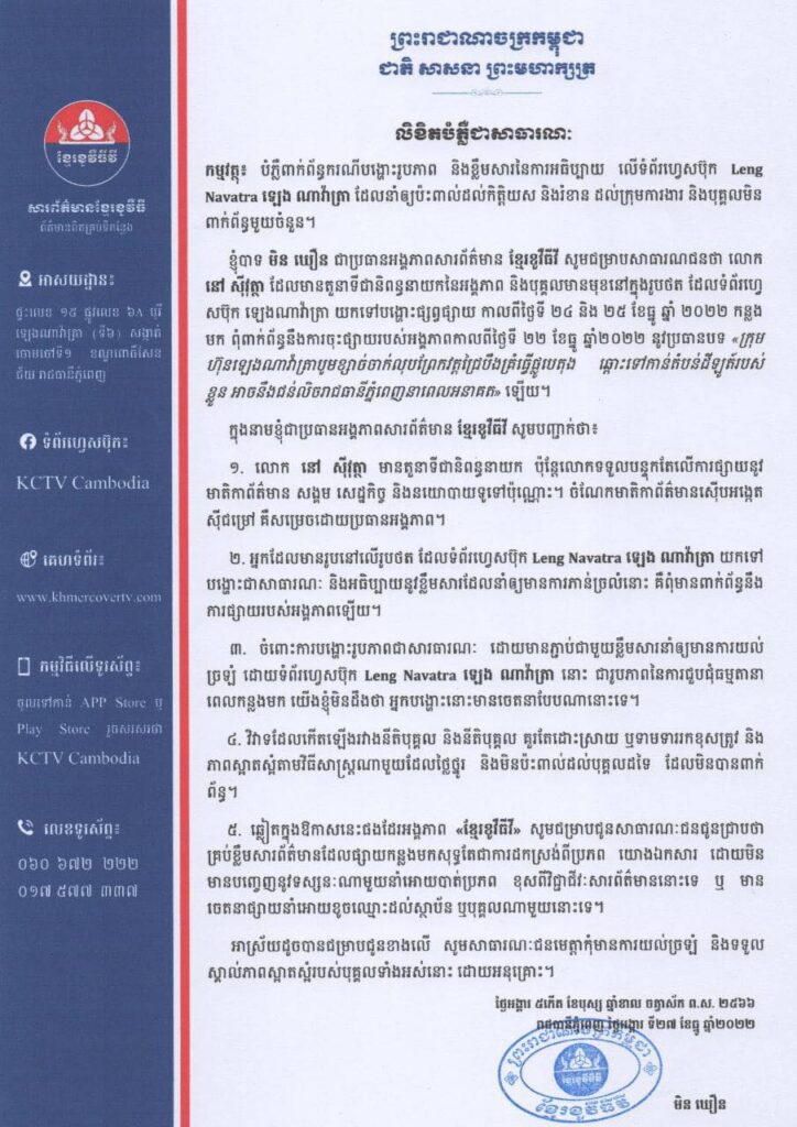 នៅក្នុងសេចក្ដីបំភ្លឺរបស់សារព័ត៌មានខ្មែរខូវឺធីវី ដែលបានចេញនៅថ្ងៃទី២៧ ខែធ្នូ ឆ្នាំ២០២២ មានសេចក្ដីលម្អិតដូចខាងក្រោមនេះ: