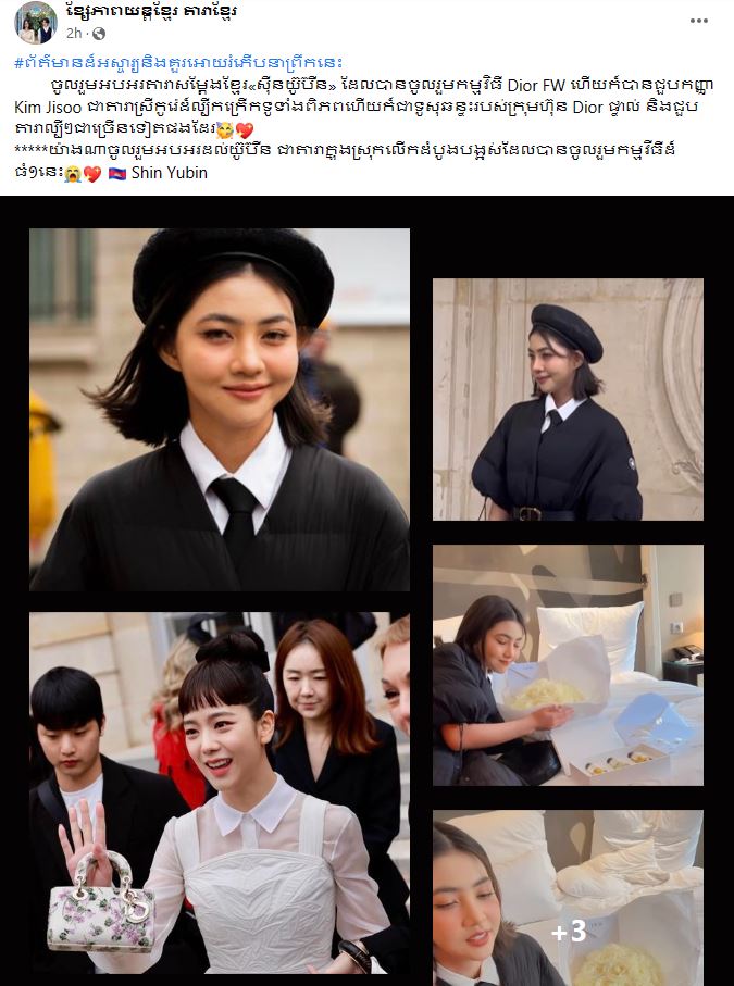 «ចូលរួមអបអរតារាសម្ដែងខ្មែរ«សុីនយ៊ូប៊ីន» ដែលបានចូលរួមកម្មវិធី Dior FW ហើយក៏បានជួបកញ្ញា Kim Jisoo ជាតារាស្រីកូរ៉េដ៏ល្បីកក្រើកទូទាំងពិភពលោកហើយក៏ជាទូតសុច្ឆន្ទៈរបស់ក្រុមហ៊ុន Dior ផ្ទាល់ និងជួបតារាល្បីៗជាច្រើនទៀតផងដែរ![]()