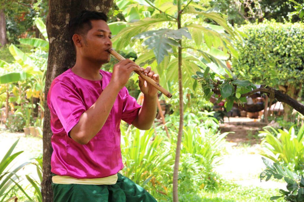 លោកមានប្រសាសន៍ទៀតថា «លោកគ្រូ ចៅអធិការគង់នៅវត្តមួយនៃស្រុកមុខកំពូលជាគ្រូបង្រៀនស្រឡៃ ខ្លុយរបស់លោកតា សុវណ្ណ ជាសង្ឃចេះដឹងច្រើនខាងមុខវិជ្ជាភ្លេង និងថា ខ្លុយមានតាំងពីរវាងឆ្នាំ៦១១ ដោយសំអាងទៅលើសិលាចារឹក បានចារអំពីតង្វាយជាស្រីរាំ៧នាក់ ស្រីច្រៀង១១នាក់ និងតន្ត្រីការិនី៤នាក់ លោកមានពុទ្ធដីកាថា តន្ត្រីការិនី៤នោះគឺម្នាក់ចេះលេងខ្លុយ ម្នាក់ចេះដេញចាប៉ី ម្នាក់គោះឈិង និងម្នាក់ទៀតទះស្គរ» ។