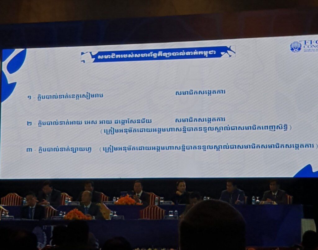 ក្នុងក្លិបបាល់ទាត់ចំនួន២ត្រូវបានអនុម័តចូលជាសមាជិករបស់សហព័ន្ធកីឡាបាល់ទាត់កម្ពុជា៖
