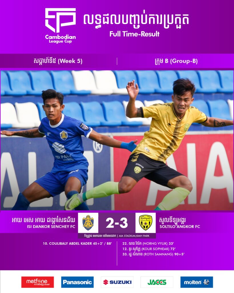 - សប្ដាហ៍ទី៥៖ សូលទីឡូអង្គរ ៣-២ អាយ អេស អាយ ដង្កោសែនជ័យ នៅកីឡដ្ឋាន AIA, KMH Park៕