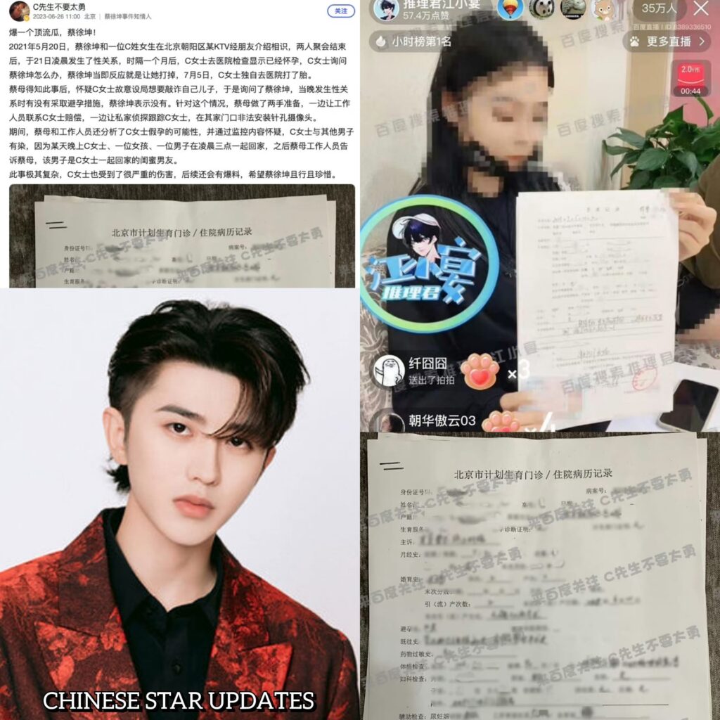 ក្រោយជប់លៀងចប់ អ្នកទាំងពីរមានទំនាក់ទំនងស៊ីជម្រៅនៅព្រឹកថ្ងៃបន្ទាប់ (២១ ខែឧសភា)។ មួយខែក្រោយមក កញ្ញា C ដែលមានសម្ព័ន្ធភាពរាងកាយស៊ីជម្រៅ បានទៅមន្ទីរពេទ្យពិនិត្យសុខភាពហើយរកឃើញថានាងកំពុងមានទម្ងន់។ កញ្ញា C បានសួរតារារូបនេះថាតើពួកគេគួរធ្វើបែបណា? ដោយ Cai XuKun បានឆ្លើយតបដោយផ្ដល់យោបល់ឱ្យនាងរំលូតកូនចេញ។ នៅថ្ងៃទី៥ ខែមិថុនា កញ្ញា C បានទៅមន្ទីរពេទ្យតែម្នាក់ឯងដើម្បីរំលូតកូន តាមផែនការដែលអ្នកទាំងពីរបានគ្រោងទុក។