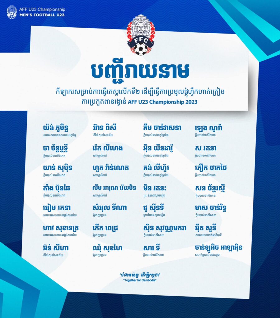 បញ្ជីរាយនាមបឋមកីឡាករជម្រើសជាតិកម្ពុជាអាយុក្រោម២៣ឆ្នាំ ចំនួន ២៨នាក់៖