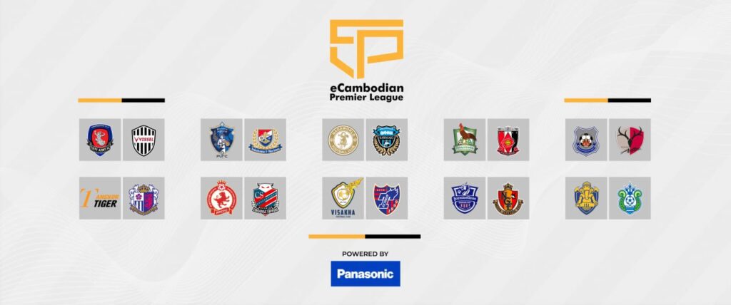 ក្លិបបាល់ទាត់ Cambodian Premier League និងក្លិប J.League (Japan Professional Football League) ដែលកីឡាករប្រើប្រាស់ក្នុង eCambodian Premier League រដូវកាល ២០២៣-២៤។