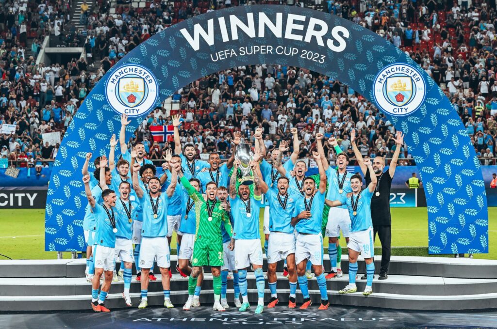 នេះគឺជាលើកដំបូងក្នុងប្រវត្តិសាស្រ្ត ដែលក្លិបមេឃខៀវ Man City ឈ្នះជើងឯក នៃពានរង្វាន់ UEFA Super Cup នៅឆ្នាំ២០២៣ នៅកីឡដ្ឋាន Karaiskakis ខណ:ពាននេះត្រូវបានបង្កើតឡើងដំបូងក្នុងឆ្នាំ ១៩៧២។