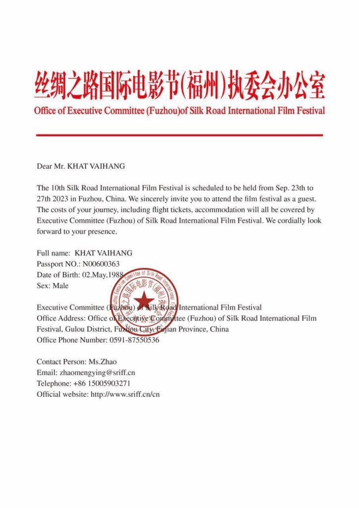 តាមលិខិតអញ្ជើញពីមហោស្រពភាពយន្តអន្តរជាតិដ៏ធំមួយនេះបានឱ្យដឹងថា លោក ខាត់ វ៉ៃហាំង នឹងត្រូវបានបង្ហាញខ្លួននៅថ្ងៃបើកមហោស្រព ថ្ងៃទី ២៧ ខែកញ្ញា ខាងមុខនេះ ដែលធ្វើឡើងនៅក្នុងទីក្រុង Fuzhou ប្រទេសចិន។ សកម្មភាពចូលរួមរបស់លោក ខាត់ វ៉ៃហាំង ក្នុងមហោស្រពភាពយន្តអន្តរជាតិនៅប្រទេសចិនជាលើកដំបូងនេះ ក៏ត្រូវបានគេសម្លឹងឃើញថា គឺជាការបង្ហាញពីការរឹតចំណងមេត្រីភាពយ៉ាងល្អរវាងសិល្បករកម្ពុជាជាមួយចិន រួមទាំងបណ្ដាប្រទេសដទៃផ្សេងទៀតផងដែរ។