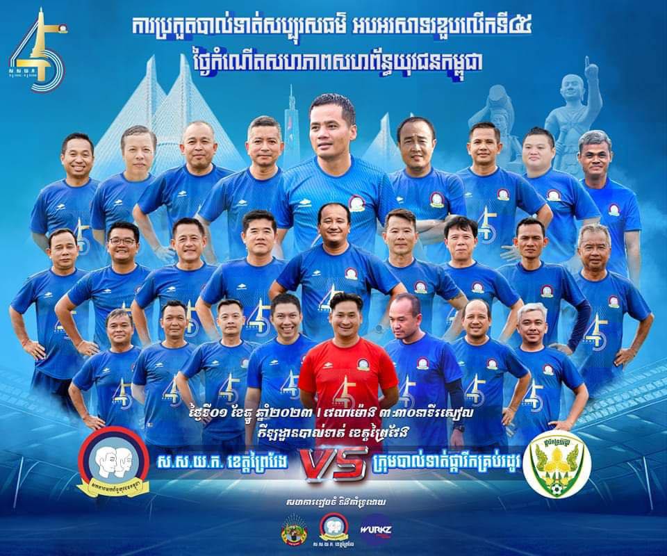 សារព័ត៌មាន«ត្រយង»ទទួលបានសិទ្ធផ្សាយផ្ទាល់ព្រឹត្តិការណ៍ប្រកួតបាល់ទាត់សប្បុរសធម៌ ស.ស.យ.ក ខេត្តព្រៃវែង ប៉ះជាមួយ ផ្ការីកគ្រប់រដូវ (ពាក់មី) ក្នុងឱកាសអបអរសាទរខួបលើកទី៤៥ នៃថ្ងៃកំណើតសហភាពសហព័ន្ធយុវជនកម្ពុជា។