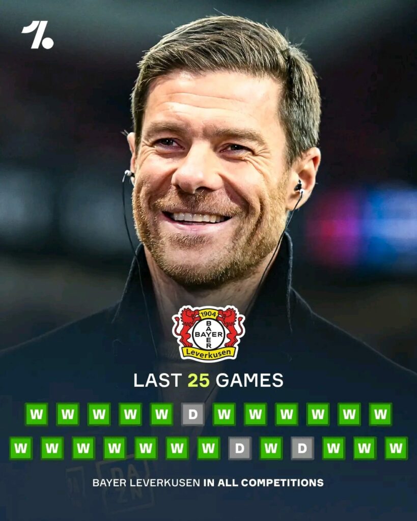 ក្រុមបាល់ទាត់ Bayer Leverkusen ក្រោមការដឹកនាំរបស់លោក Xabi Alonso បន្តឈរកំពូលតារាងនៃលីគកំពូលអាល្លឺម៉ង់ Bundesliga ក្លាយជាក្រុមដំបូងក្នុងប្រវត្តិសាស្ត្របាល់ទាត់អាឡឺម៉ង់ដែលនៅតែមិនស្គាល់រសជាតិចាញ់សោះ២៥ប្រកួតជាប់ៗគ្នា។