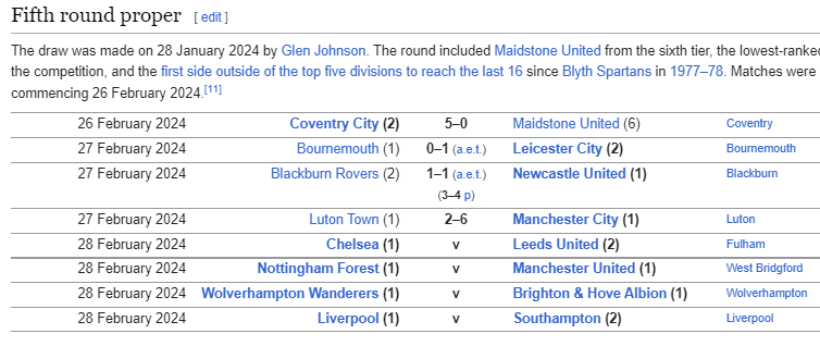 លទ្ធផល និងកម្មវិធីប្រកួតជុំទី៥ FA Cup៖