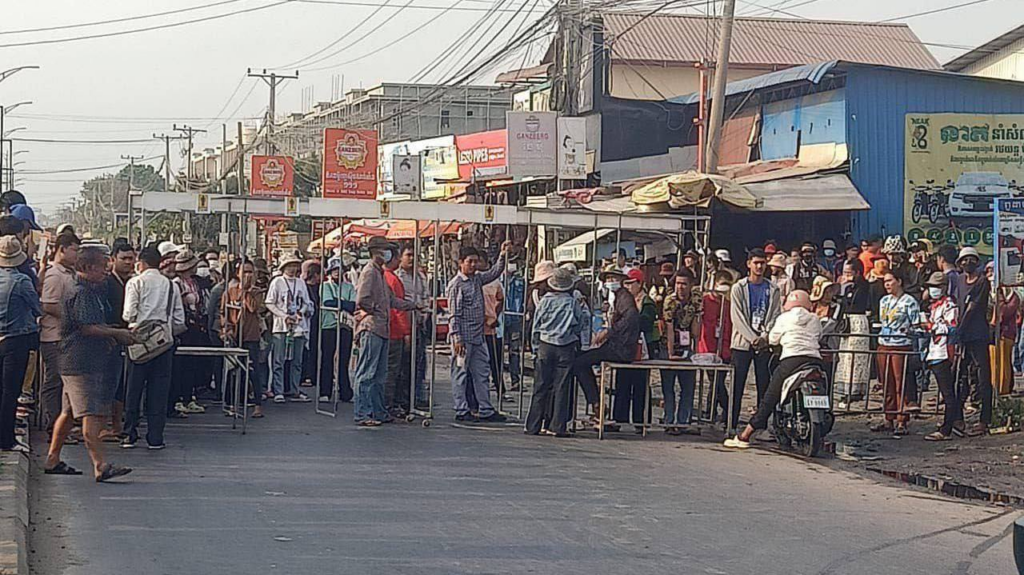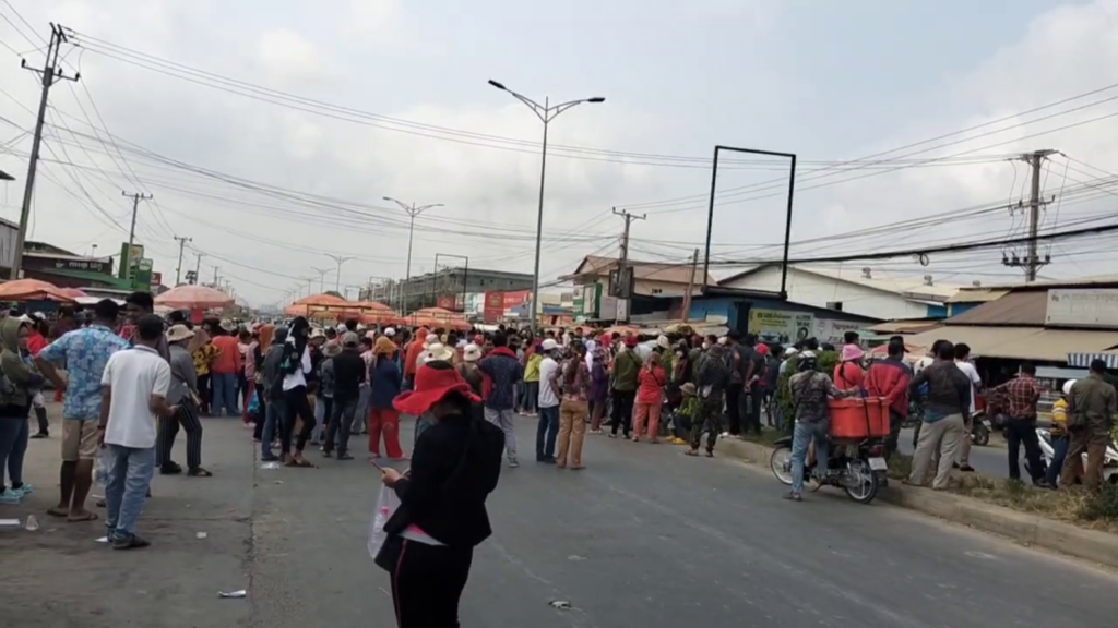 ភ្នំពេញ ៖ កម្មកររោងចក្រចំនួន៤០០៩នាក់ ផ្ទុះកូដកម្មតវ៉ាទាមទារកប្រាក់ឈ្នួល បន្ទាប់ពីខាងក្រុមហ៊ុនរោងចក្រ ពុំមានលទ្ធភាពបើកប្រាក់ជូកម្មករ រហូតដល់កម្មករបិទកំណាត់ផ្លូវខាងមុខរោងចក្រ Y&W តាមផ្លូវ២១៧ ភូមិព្រៃកជ្រៃ សង្កាត់ស្ពានថ្ម ខណ្ឌដង្កោ រាជធានីភ្នំពេញ កាលពីវេលាម៉ោង៨ព្រឹក ថ្ងៃទី០៩ ខែមិនា ឆ្នាំ២០២៤ ។