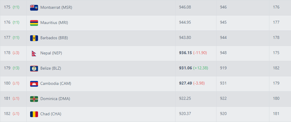 តារាងចំណាត់ថ្នាក់ FIFA Rankings៖