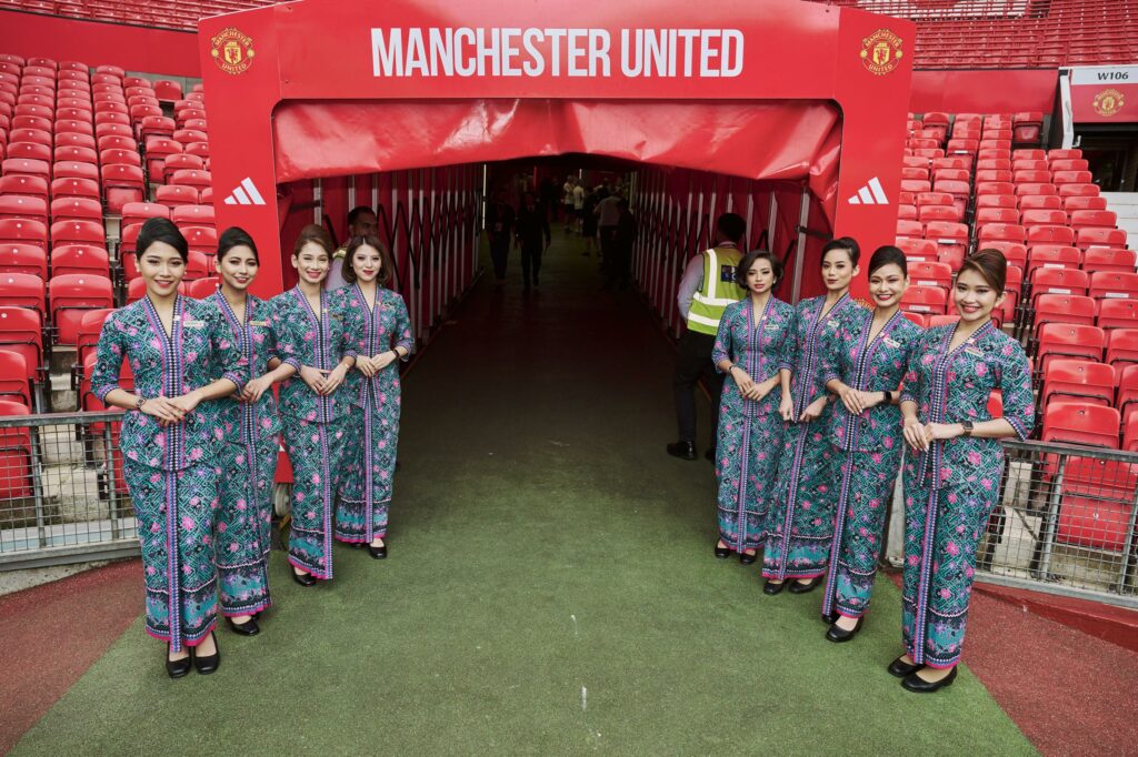 ក្រុមហ៊ុនអាកាសចរណ៍ម៉ាឡេស៊ី Malaysia Airlines (MAS) ក្នុងឈុតប្រពៃណី Kebaya ឈរអមដំណើរកីឡាកររបស់ក្រុមបាល់ទាត់ Manchester United ដើរចូលទីលានក្នុងជំនួបទល់នឹង Arsenal នៅកីឡដ្ឋាន Old Trafford ក្រោយភាគីទាំង២បានចុះហត្ថលេខាលើភាពជាដៃគូររយៈពេលវែង។