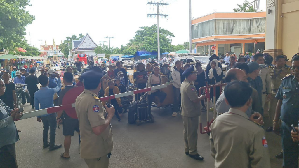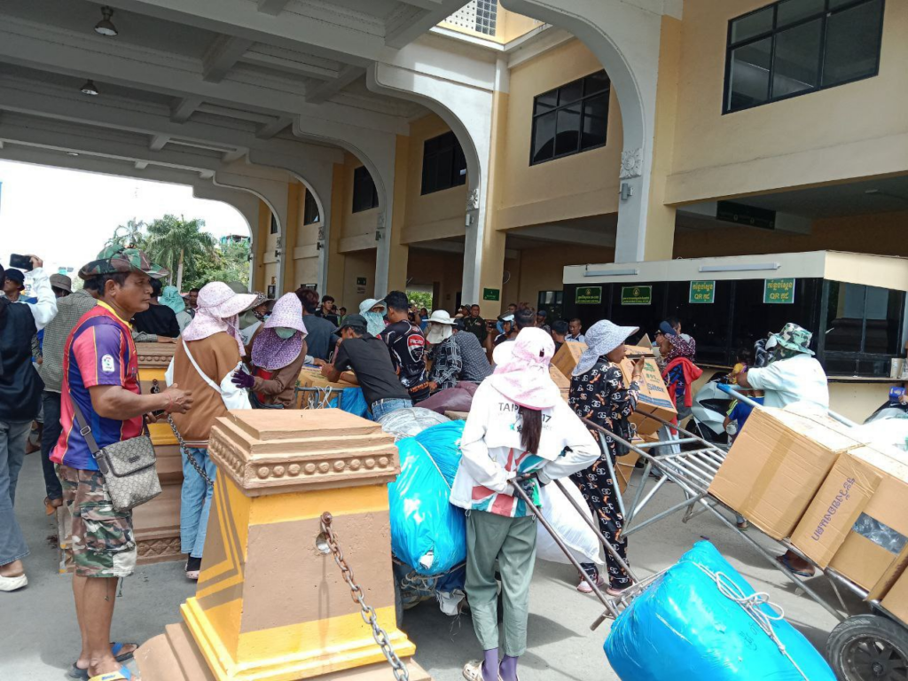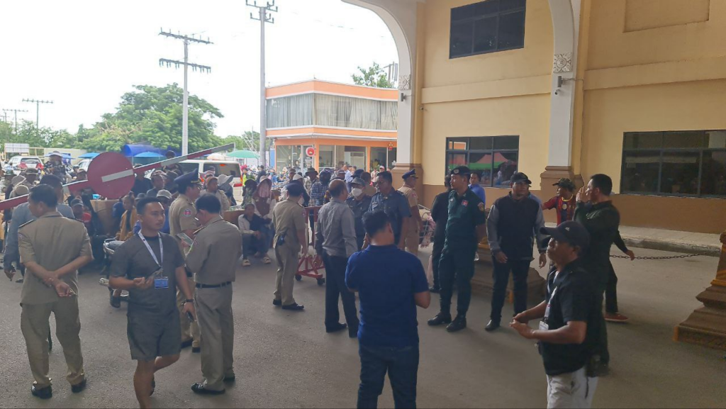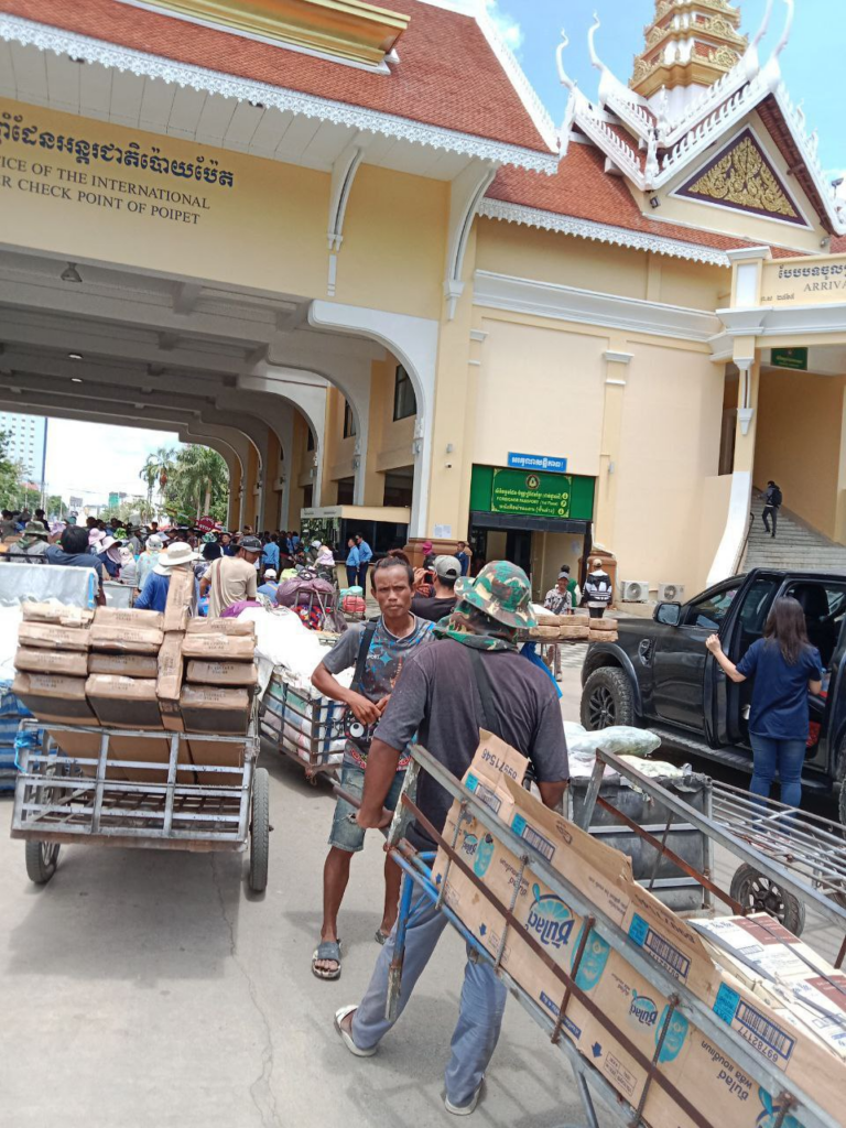 បន្ទាយមានជ័យ៖ កម្មករអូសរទេះប្រមាណជា៥០ទៅ៦០នាក់ធ្វើការតវ៉ាជាមួយមន្ត្រីគយនិងរដ្ឋាករនគរបាលអន្តោប្រវេសន៍នៅពេលរឹតបណ្តឹងការត្រួតពិនិត្យសម្ភារៈនាំចូលធ្វើឡើងនៅរសៀលថ្ងៃទី២៥ ខែឧសភា ឆ្នាំ២០២៤នៅច្រកទ្វារអន្តរជាតិប៉ោយប៉ែត។