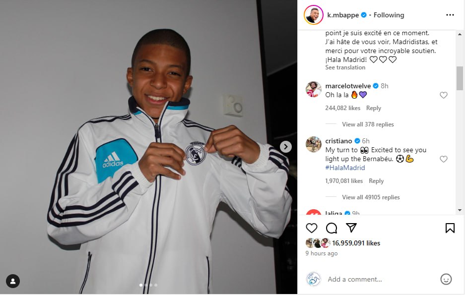 មានកីឡាករឆ្នើមៗជាច្រើនបានចូល បញ្ចេញមតិក្នុងការបង្ហោះរបស់ Kylian Mbappé ដោយក្នុងនោះក៏មានទាំងអតីតសមាជិកសំខាន់របស់ Real Madrid គឺកីឡាករ Cristiano Ronaldo បានសរសេរសារខ្លីតបថា៖«វេនរបស់ខ្ញុំ ទស្សនាការបង្ហាញសមត្ថភាពរបស់អ្នក (Kylian Mbappé) នៅកីឡដ្ឋាន Bernabéu»។