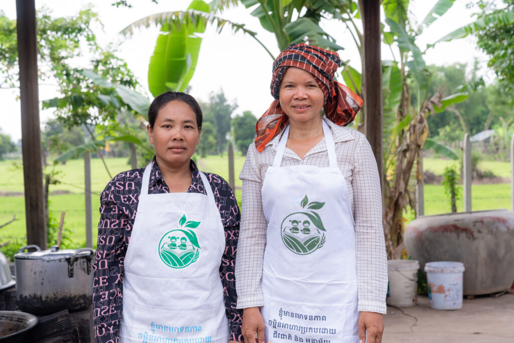 ជាចុងភៅចម្អិនអាហារឲ្យក្មេងផង និងជាម្ដាយសិស្សផង បានប្រាប់ថា ប្រភពម្ហូបអាហារដែលចម្អិនឲ្យក្មេងៗបរិភោគ គឺបានមកពីសហគមន៍នៅក្នុងមូលដ្ឋាន ដែលមានដូចជា ត្រី សាច់ និងបន្លែបង្ការ ដាំដោយអ្នកស្រុកផ្ទាល់។