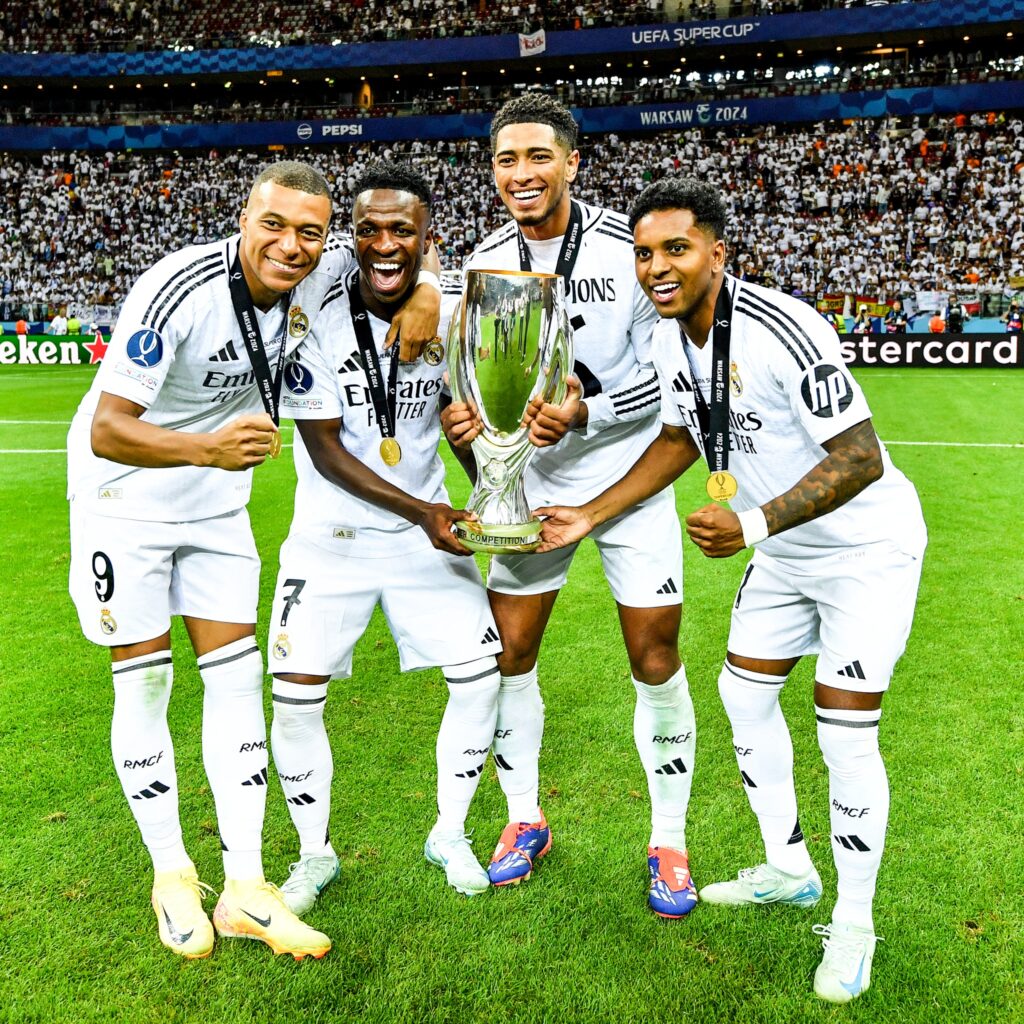 ក្លិបបាល់ទាត់ Real Madrid របស់អេស្ប៉ាញ បានក្លាយជាម្ចាស់ឯកនៃពានរង្វាន់ UEFA Super Cup ឆ្នាំ២០២៤ ក្រោយយកឈ្នះ Atalanta របស់អ៊ីតាលី ក្នុងលទ្ធផល ២-០ នៅកីឡដ្ឋាន Kazimierz Górski National ប្រទេសប៉ូឡូញ កាលពីយប់ថ្ងៃទី១៤ ឈានចូលព្រឹកថ្ងៃទី១៥ ខែសីហា ឆ្នាំ២០២៤។