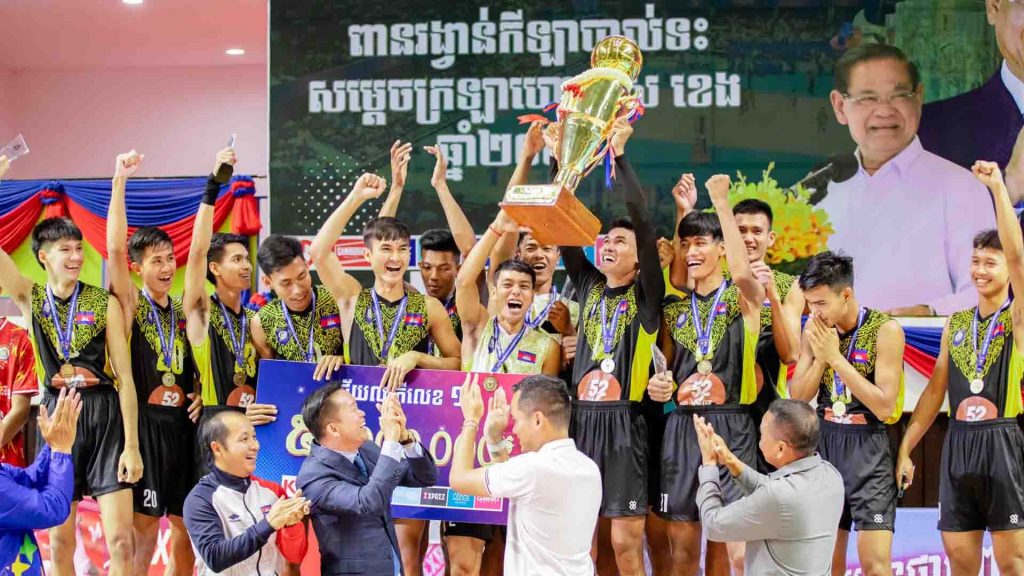 សូមជម្រាបជូនថាកាលពីការប្រកួតកីឡាបាល់ទះដណ្តើមពានរង្វាន់សម្តេចក្រឡាហោម ស ខេង ឆ្នាំ២០២៣ ក្រុមបាល់ទះ ក្រសួង មហាផ្ទៃ (ខ) គ្រងជើងឯក អមទឹក ប្រាក់ ៥០លាន រៀល ក្រោយយកឈ្នះក្រុម រដ្ឋបាលរាជធានីភ្នំពេញ ៣សិតទល់១៕
