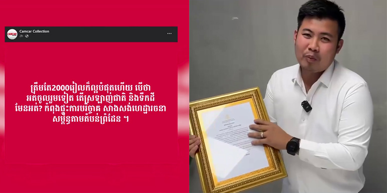ការបង្ហោះលើហ្វេសប៊ុកជាមួយវីដេអូប្រមាណ ២នាទី Camcar បាននិយាយថា លោករំភើបណាស់បងប្អូនដែលទទួលបានលិខិតថែ្លងអំណរគុណ ដោយបរិច្ចាគត្រឹម ២០០០រៀល ក៏សម្តេចចុះហត្ថលេខាដោយផ្ទាល់។ ទោះបីថវិកាតិច ឬច្រើន ក៏បងប្អូនមានឱកាសដូចលោក។