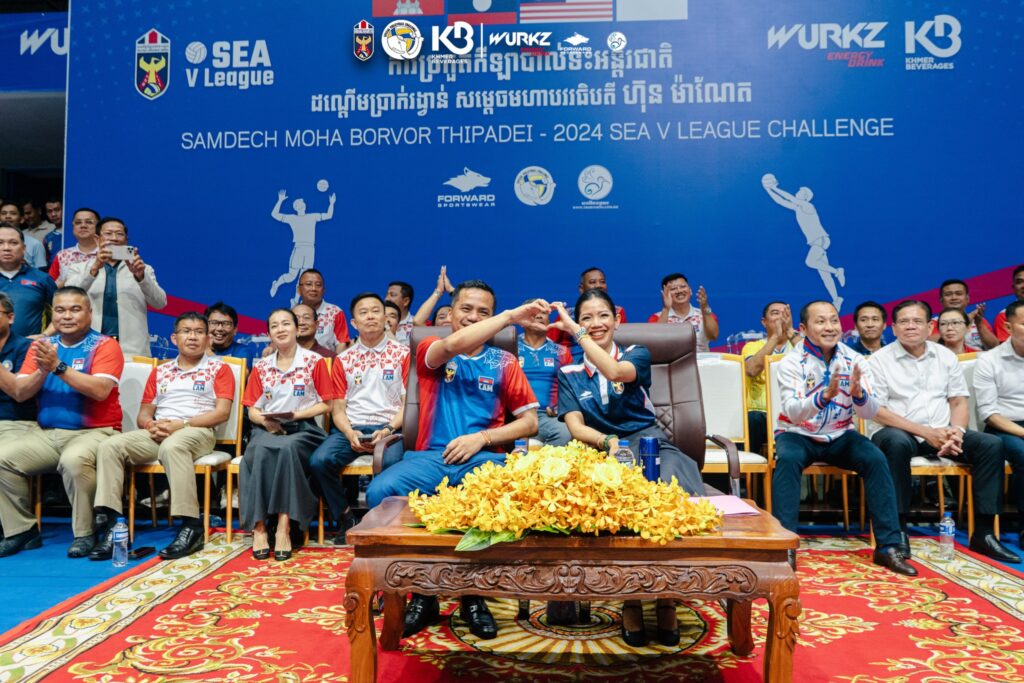 ឯកឧត្ដមអភិសន្តិបណ្ឌិត ស សុខា រដ្ឋមន្ត្រីក្រសួងមហាផ្ទៃ និងជាបរ្ធានសហព័ន្ធកីឡាបាល់តះកម្ពុជា នៅព្រឹកថ្ងៃទី០៣ កញ្ញានេះ បានបង្ហាញការអបអរសាទរក្រុមបាល់ទះជម្រើសជាតិកម្ពុជា ក្នុងការដណ្ដើមបានទឹកប្រាក់១០០លានរៀលពីពានរង្វាន់សម្តេចមហាបវធិបតី ហ៊ុន ម៉ាណែត ឆ្នាំ២០២៤ (SAMDECH MOHA BORVOR THIPADEI -2024) និងទទួលកៅអីឡើងទៅវគ្គបន្តក្នុងពាន SEA V.League។