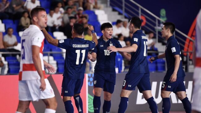 ក្រុមបាល់ទាត់ហ្វូតសាលបុរសជម្រើសជាតិថៃ បន្តយកឈ្នះ ២ប្រកួតជាប់គ្នា ក្នុងវគ្គជម្រុះក្នុងពូល នៃព្រឹត្តិការណ៍ប្រកួតពានរង្វាន់បាល់ទាត់ហ្វូតសាលជើងឯកពិភពលោក 2024 FIFA Futsal World Cup ដោយឈ្នះក្រូអាត និងបន្តឈ្នះគុយបា ដែលការប្រកួត ធ្វើឡើងនៅ ប្រទេសអ៊ូសបេគីស្ថាន។