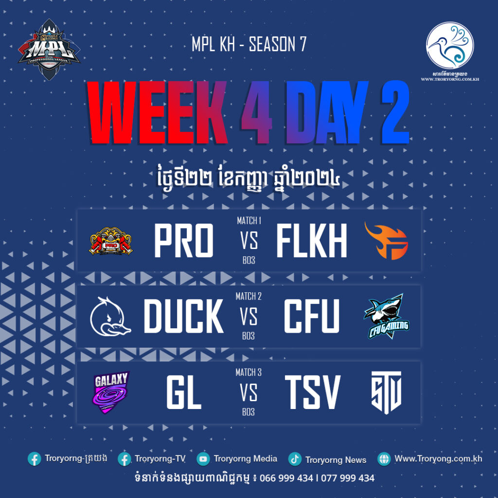 កម្មវិធីប្រកួត សប្ដាហ៍ទី៤ ថ្ងៃទី២១ កញ្ញា ២០២៤នេះ៖