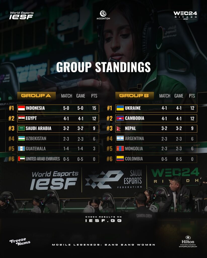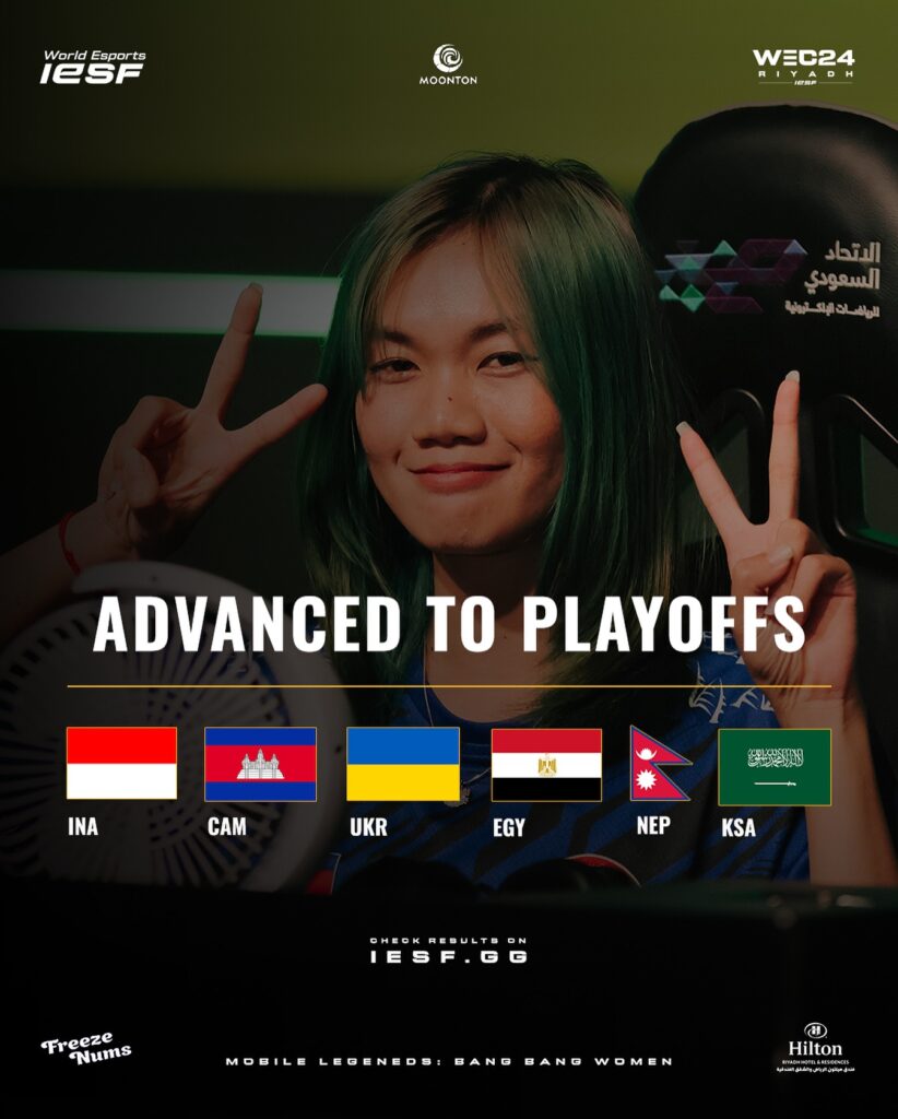 ក្រុមកីឡាការិនីអ្នកចម្បាំងអង្គរកម្ពុជា បានកក់កៅអីទៅវគ្គ Playoff នៃព្រឹត្តិការណ៍ជើងឯកពិភពលោកលើកទី១៦ (IESF – International Esports Federation 16th World Esports Championship 2024) វិញ្ញាសា Mobile Legends: Bang Bang បន្ទាប់ពីធ្វើបានយ៉ាងល្អក្នុងវគ្គសន្សំពិន្ទុ ពូល B ក្នុងលទ្ធផល ឈ្នះ ៤ ចាញ់ ១។