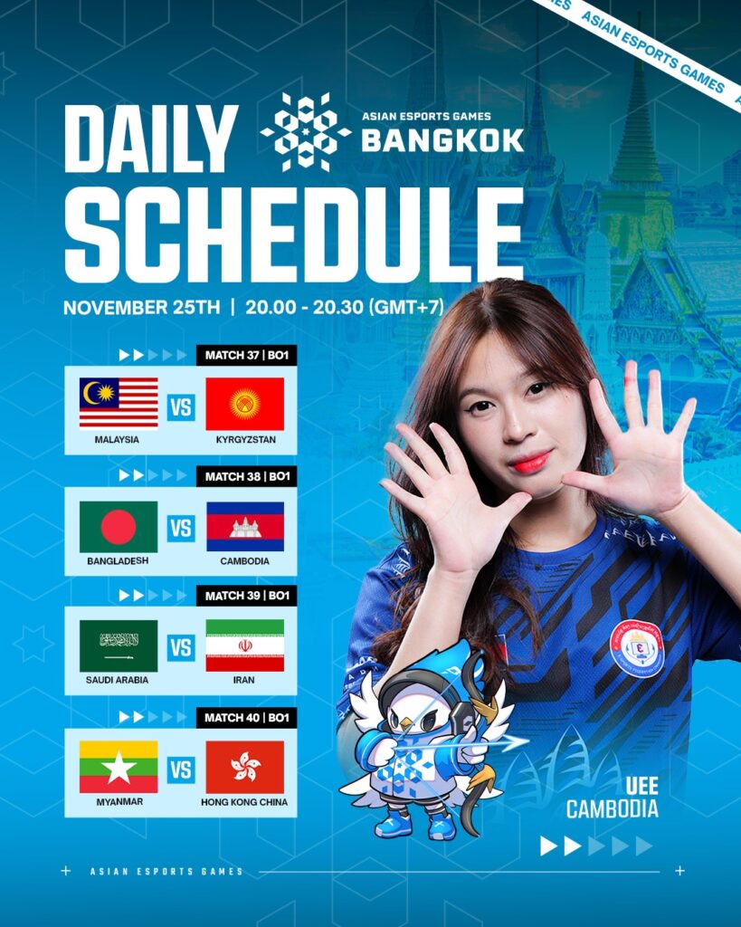សហព័ន្ធកីឡាអេឡិចត្រូនិកកម្ពុជា បានបញ្ចូនក្រុមកីឡាករនិងកីឡាការិនី ជម្រើសជាតិ (ANGKOR WARRIORS ) នឹងទៅចូលរួមប្រកួត ASIAN ESPORTS GAMES 2024 មាន២វិញ្ញាសាគឺ MLBB FEMALE និង eFootball Mobile នៅប្រទេសថៃពី ថ្ងៃទី២៣ ដល់ថ្ងៃទី៣០ ខែវិច្ឆិកា ឆ្នាំ២០២៤ តែវិញ្ញាសា eFootball Mobile ប្រកួតដល់ថ្ងៃទី២ ខែធ្នូ ឆ្នាំ២០២៤។