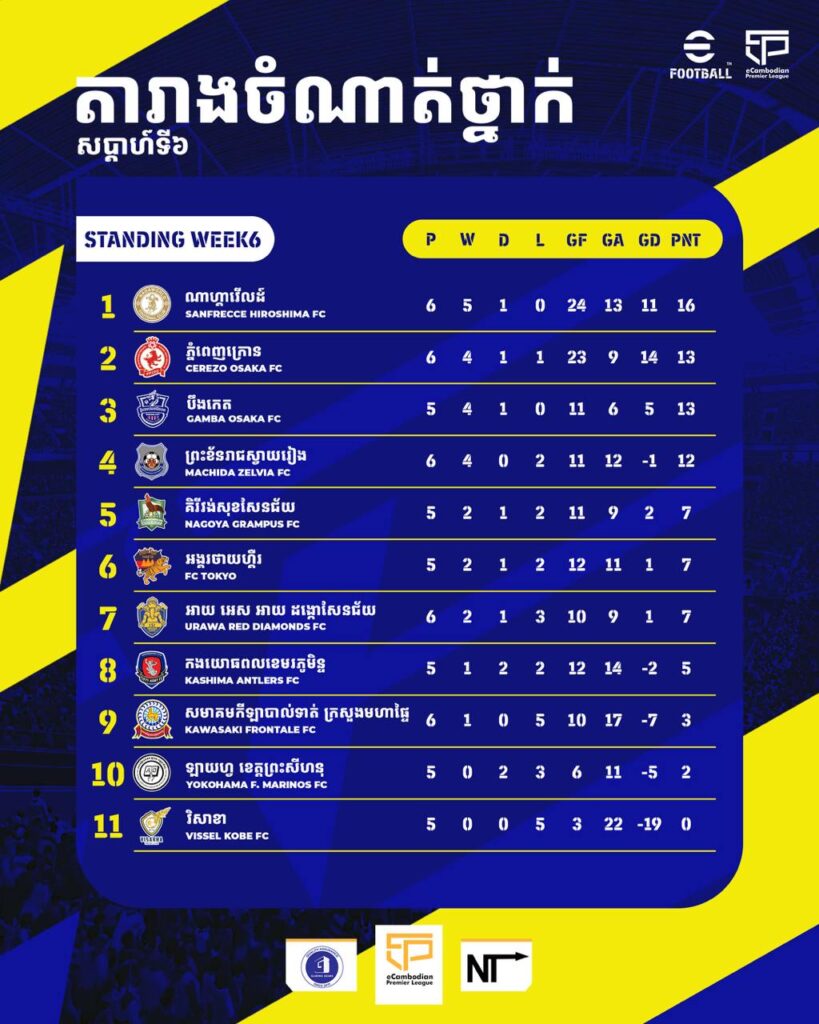 តារាងចំណាត់ថ្នាក់ត្រឹមសប្តាហ៍ទី៦