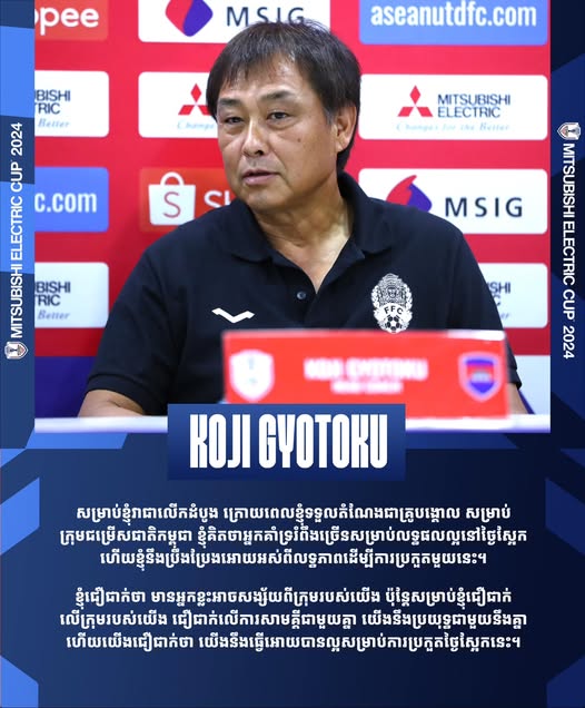 ចំណាប់អារម្មណ៍លោក KOJI GYOTOKU គ្រូបង្វឹកក្រុមជម្រើសកម្ពុជា មុនប៉ះម៉ាឡេស៊ីល្ងាចនេះ៖