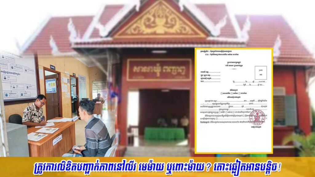 លោកបណ្ឌិត ទូច សុឃៈ ឯកសារត្រូវស្នើសុំសេវានេះ រួមមាន ១.សម្រាប់ប្រជាពលរដ្ឋនៅលីវ គឺ អត្តសញ្ញាណប័ណ្ណ សំបុត្រកំណើត និងលិខិតបញ្ជាក់របស់សាក្សី (មេភូមិឬចាស់ទុំនៅក្នុងភូមិ) ២.សម្រាប់ប្រជាពលរដ្ឋមេម៉ាយឬពោះម៉ាយ គឺសេចក្ដីចម្លងលិខិតមរណភាពអតីតប្តី-ប្រពន្ធ ឬសាលក្រម ឬសាលដីកាឬដីកាសម្រេចស្ថាពររបស់តុលាការ សៀវភៅគ្រួសារ ហើយកុំភ្លេច រូបថត 4×6៕