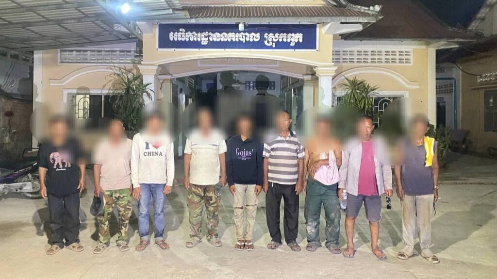 សៀមរាប ៖ ក្រុមអ្នកញៀនល្បែងសុីសងជល់មាន់ ប្រមូលផ្តុំគ្នាលេង ដោយភ្លេចខ្លួន ត្រូវបានកម្លាំងសមត្ថកិច្ចចុះទៅឃាត់បាន៩នាក់ សម្ភារៈមួយចំនួនទៀត កាលពីរសៀលថ្ងៃទី១៦ ខែកុម្ភៈ ឆ្នាំ២០២៥ ស្ថិតនៅក្នុងភូមិដូនស្វា ឃុំសំរោងយា ស្រុកពួក ខេត្តសៀមរាប ។