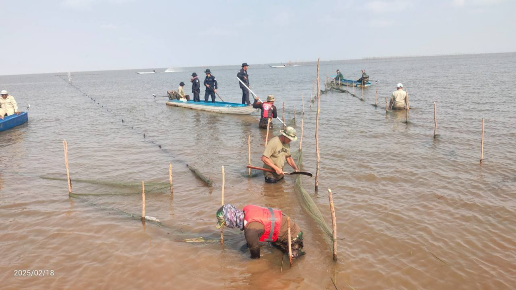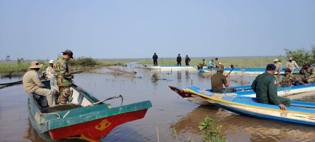 កំពង់ធំ÷ កម្លាំងអន្តរាគមន៍ នៃបញ្ជាការដ្ឋានតំបន់ប្រតិបត្តិការសឹករងកំពង់ធំ នៅថ្ងៃទី១៨ ខែកុម្ភៈ ឆ្នាំ២០២៥ ដឹកនាំដោយលោកវរសេនីយ៍ទោ សេង សំអុល នាយសេនាធិការរង និងជាមេបញ្ជាការកងកម្លាំងអន្តរាគមន៍ បានសហការជាមួយកម្លាំងចម្រុះ ដែលមានមន្ត្រីជលផលសង្កាត់ផាត់សណ្ដាយ កងកម្លាំងប្រដាប់អាវុធទាំងបី មន្ត្រីឧទ្យានុរៈតំបន់រ៉ាំសា បានចេញសកម្មភាពបង្ក្រាបបទល្មើសនេសាទខុសច្បាប់ នៅតំបន់កោះតាបរ ក្នុងឃុំផាត់សណ្ដាយ ស្រុកកំពង់ស្វាយ ខេត្តកំពង់ធំ។