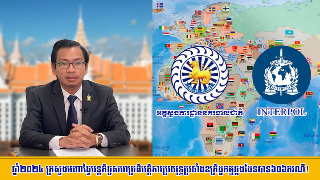 ក្នុងឆ្នាំ២០២៤ កន្លងទៅក្រសួងមហាផ្ទៃបានបន្តកិច្ចសហប្រតិបត្តិការប្រយុទ្ធប្រឆាំងឧក្រិដ្ឋកម្មឆ្លងដែនជាមួយបណ្តាប្រទេសជាសមាជិកនគរបាលអន្តរជាតិ និងដៃគូសហប្រតិបត្តិការទាំងក្នុង និងក្រៅតំបន់សរុបបានចំនួន៦០៦ករណី។ នេះបើតាមរបាយការណ៍លទ្ធផលការងារឆ្នាំ២០២៤ និងលើកទិសដៅការងារឆ្នាំ២០២៥ របស់ក្រសួងមហាផ្ទៃ។