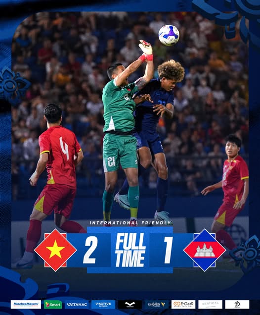 ក្រុមជម្រើសជាតិវៀតណាម បានយកឈ្នះក្រុមជម្រើសជាតិកម្ពុជា ក្នុងលទ្ធផល ២-១ នៃការប្រកួតមិត្តភាពអន្តរជាតិ នារាត្រីថ្ងៃទី១៩ ខែមីនា ឆ្នាំ២០២៥ កីឡដ្ឋាន Gò Đậu, ខេត្ត Binh Duong ប្រទេសវៀតណាម។