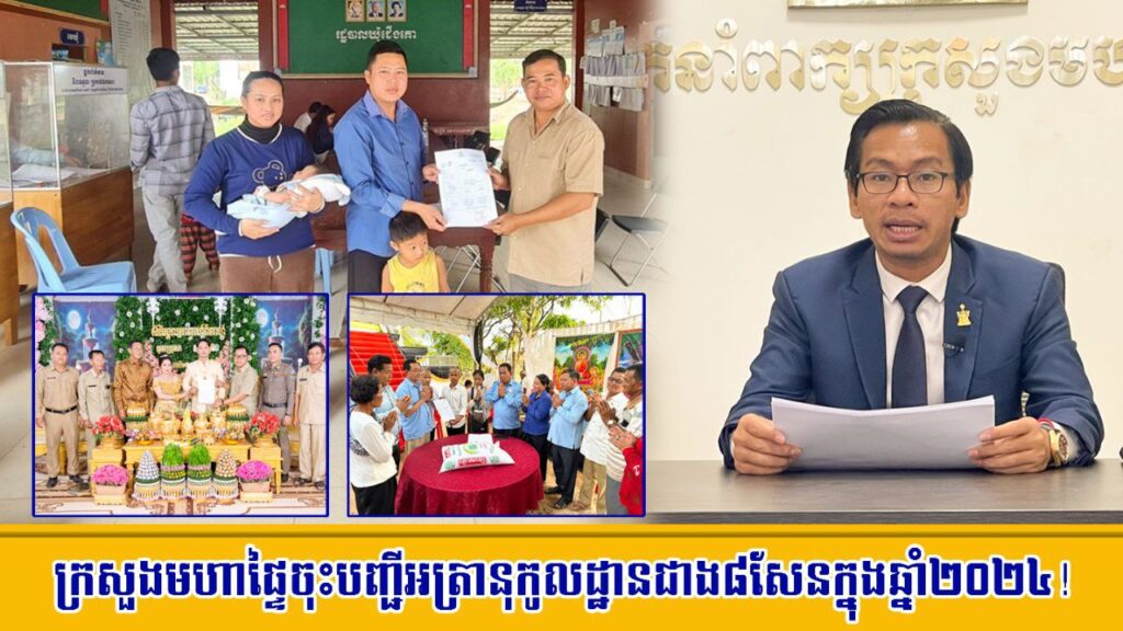 ក្នុងឆ្នាំ២០២៤ក្រសួងមហាផ្ទៃបានចុះបញ្ជីអត្រានុកូលដ្ឋានគ្រប់ប្រភេទបានចំនួន ៨១៤.៤០៤បញ្ជី ដែលមានអ្នកមកទទួលសេវាចំនួន ១.០៩៨.៣៧២នាក់។ នេះបើតាមរបាយការណ៍ស្ដីពី លទ្ធផលការងារឆ្នាំ២០២៤ និងលើកទិសដៅការងារឆ្នាំ២០២៥របស់ក្រសួងមហាផ្ទៃ។