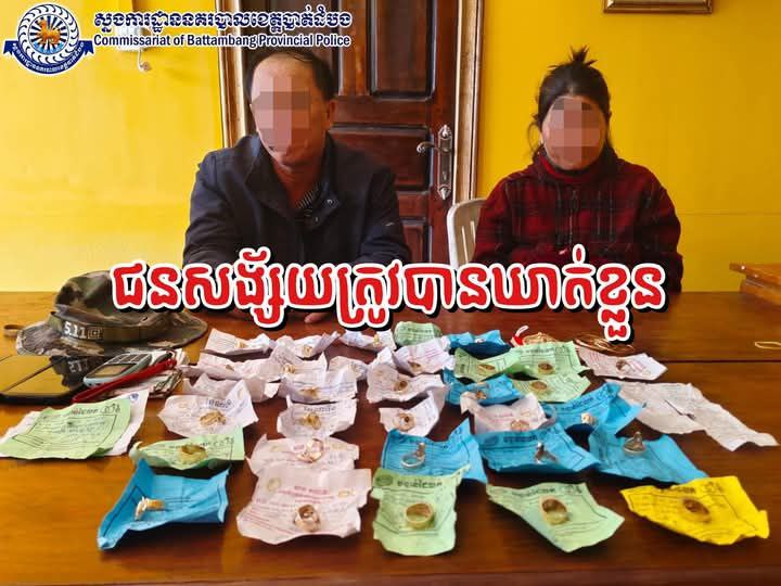 បាត់ដំបង÷ នៅថ្ងៃទី ២១ ខែមីនា ឆ្នាំ២០២៥វេលាម៉ោង៩ និង៥០ នាទី ព្រឹក មានករណីឆបោកមួយបានកើត ឡើង ក្នុងទីប្រជុំជនផ្សារមួយកន្លែងក្នុងស្រុកសំឡូត ខេត្តបាត់ដំបង ខណៈអាជីវករលក់មាស ប្តូរប្រាក់ឈ្មោះ លាម ណែត ភេទស្រី អាយុ២៦ ឆ្នាំនៅក្រុមទី ០៣ ភូមិស៊ុង ១ ឃុំស៊ុង ស្រុកសំឡូត ខេត្តបាត់ដំបង កំពុងមមាញឹក ក្នុងការប្រកបមុខរបររកទទួលទានរបស់ខ្លួន ត្បិតមានអតិថិជនចូលមកទាំងព្រឹក គិតថានាំហេងៗ នាំលាភ នាំសំណាងនោះ ដោយស្រ្តីនិងបុរសវ័យកណ្តាល ០២នាក់ ចូលមកបញ្ចាំចិញ្ចៀនមាសមួយវង់ ក្នុងតម្លៃ ៤០០,០០០រៀល(សែសិបម៉ឺនរៀល)ដោយសន្យាថា ត្រូវការប្រាក់ចំបាច់ បញ្ចាំតែបីថ្ងៃទេនឹងមកលស់យក ចិញ្ចៀននេះទៅវិញ។