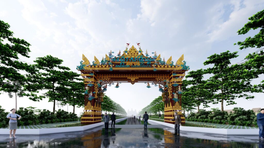 តាមការឱ្យដឹងពីផេក ព្រឹត្តិការណ៍អង្គរសង្ក្រាន្ត ឆ្នាំ២០២៥ ខ្លោងទ្វារដ៏ប្រណិតស្អាតឥតខ្ចោះនេះ ត្រូវបានរចនាឡើងតាមរចនាប័ទ្មបែបបុរាណ មានក្បូរក្បាច់លម្អដ៏ប្រណីត និងមានបង្កប់នូវអត្ថន័យបែបខ្មែរ ប្រៀបដូចជាដួងព្រលឹងខ្មែរ ដែលញញឹម សាទរ ស្វាគមន៍ រាក់ទាក់ ភ្ញៀវទេសចរជាតិ និងអន្តរជាតិ នៅថ្ងៃបុណ្យចូលឆ្នាំថ្មីប្រពៃណីជាតិនាពេលឆាប់ៗខាងមុខនេះ។ កុំភ្លេចចូលរួមថតរូបអនុស្សាវរីយ៍នៅឯខ្លោងទ្វារអង្គរសង្ក្រាន្តផងណា!