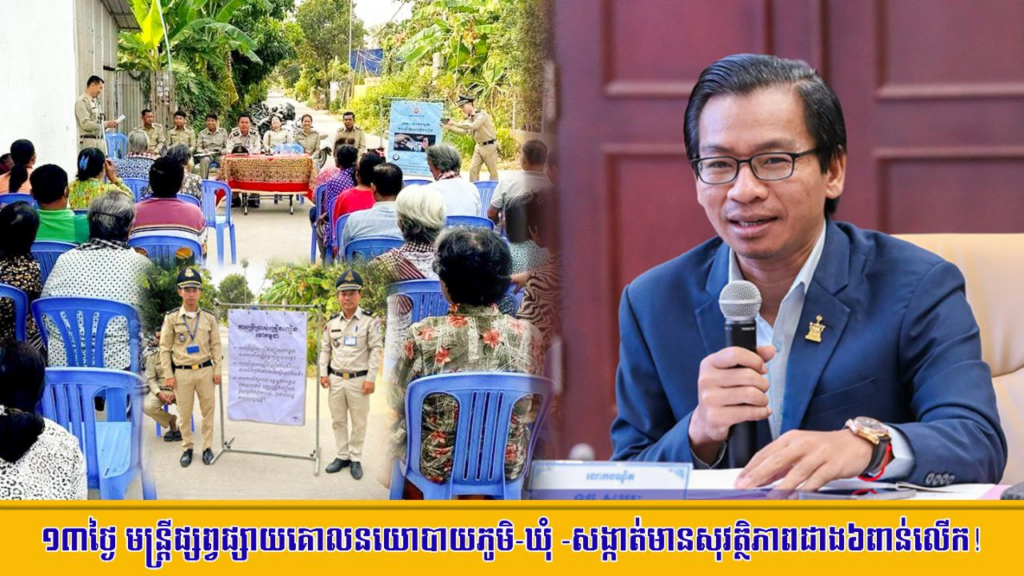 មន្រ្តីអាជ្ញាធរសម្រេចបានផ្សព្វផ្សាយគោលនយោបាយភូមិ-ឃុំ-សង្កាត់មានសុវត្ថិភាពជាង៦ពាន់លើក មានប្រជាពលរដ្ឋចូលរួមជាង៣សែននាក់ទូទាំងរាជធានី ខេត្ត ក្នុងរយៈពេល១៣ថ្ងៃ ចាប់ពីថ្ងៃទី១១ រហូតដល់ថ្ងៃទី២៣ ខែមីនា ឆ្នាំ២០២៥។ នេះបើតាមអ្នកនាំពាក្យរងក្រសួងមហាផ្ទៃ លោក ទូច សុឃៈ ។