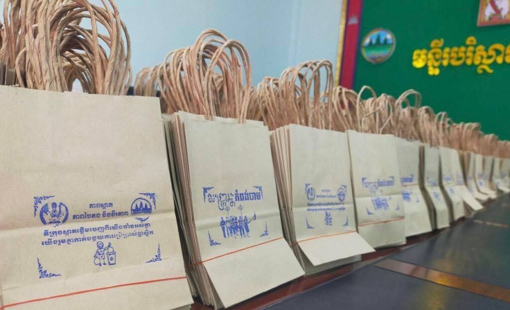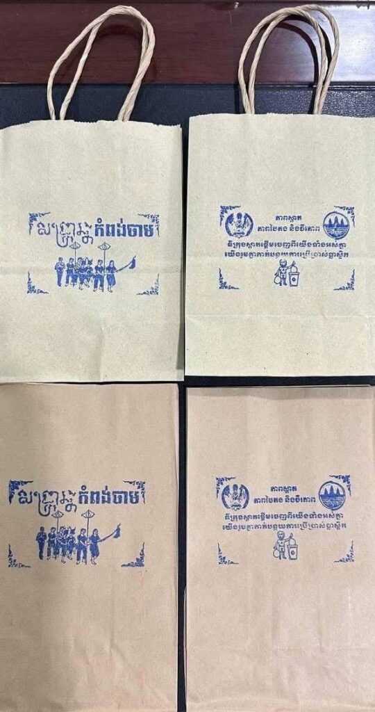 កំពង់ចាម÷ ឯកឧត្ដម អ៊ុន ចាន់ដា អភិបាលខេត្តកំពង់ចាម បានបញ្ជាក់ប្រាប់ថា ស្បោងក្រដាសខ្ចប់សំបកលៀសចំនួន ១០ម៉ឺន បានរៀបចំរួចរាល់ ដោយមិនប្រើប្លាស្ទិកនោះឡើយ ។