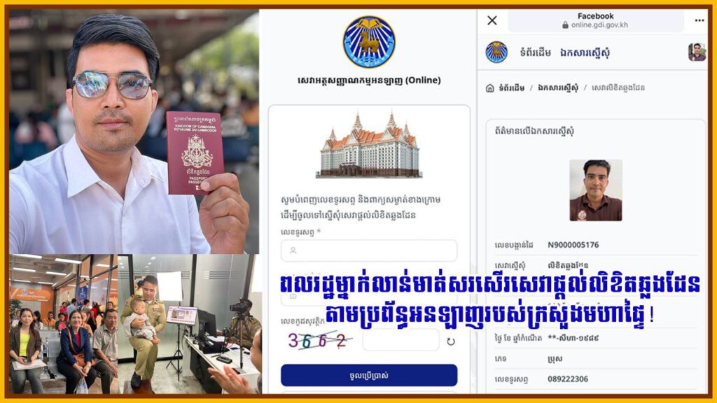 សេវាផ្តល់លិខិតឆ្លងដែនតាមប្រព័ន្ធអនឡាញ (Online) https://online.gdi.gov.kh ទទួលខុសត្រូវបម្រើជូនប្រជាពលរដ្ឋ ដោយអគ្គនាយកដ្ឋានអត្តសញ្ញាណកម្មនៃក្រសួងមហាផ្ទៃ បាននិងកំពុងទាក់ចិត្តពលរដ្ឋអ្នកស្នើសុំសេវាដែលនិយមប្រើប្រាស់បច្ចេកវិទ្យាជាបន្តបន្ទាប់។ ជាក់ស្ដែងនារសៀលថ្ងៃទី២២ ខែមេសា ឆ្នាំ២០២៥ មានពលរដ្ឋមួយរូបបានប្រើប្រាស់គណនីអាខោនហ្វេសប៊ុកផ្ទាល់ខ្លួនឈ្មោះ Om Chetchan Nara បានបង្ហោះសារលាន់មាត់សរសើរសេវាក្នុងសំណេរដើមថា « ជឿអត់មកធ្វើ Passport ចំណាយពេលប៉ុន្មាននាទីប៉ណ្ណោះ ? បើចង់លឿន ចុះឈ្មោះតាមអនឡាញ (Online) ជាមុនពេលមកដល់ទីតាំង មហាស្រួល មន្រ្តីរស់រាយ និងធ្វើការលឿនរហ័ស»។