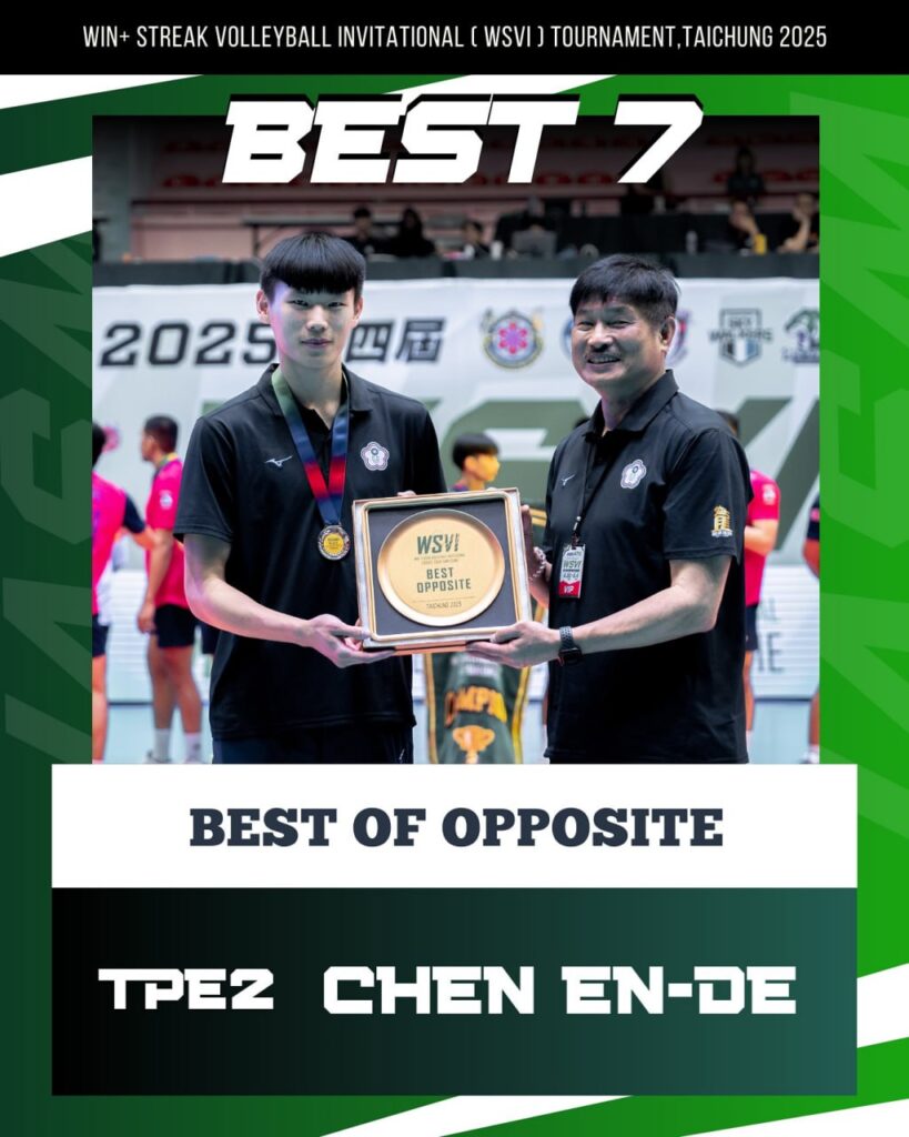 - អ្នកវាយសេវាល្អជាងគេបានលើកីឡាករ Chen En-De របស់ Longmy Construction (តៃវ៉ាន់)