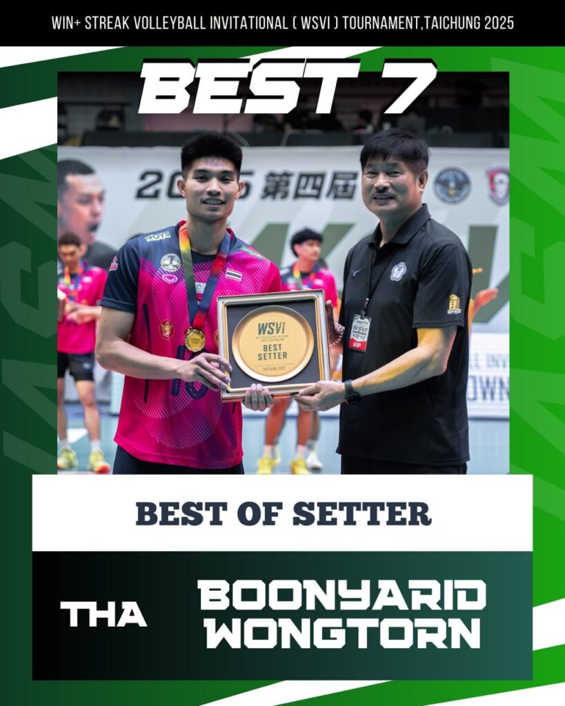 - កីឡាករលើកបាល់ល្អជាងគេបានលើ Boontarid Wongtorn របស់ Nakhon Ratchasima (ថៃ)