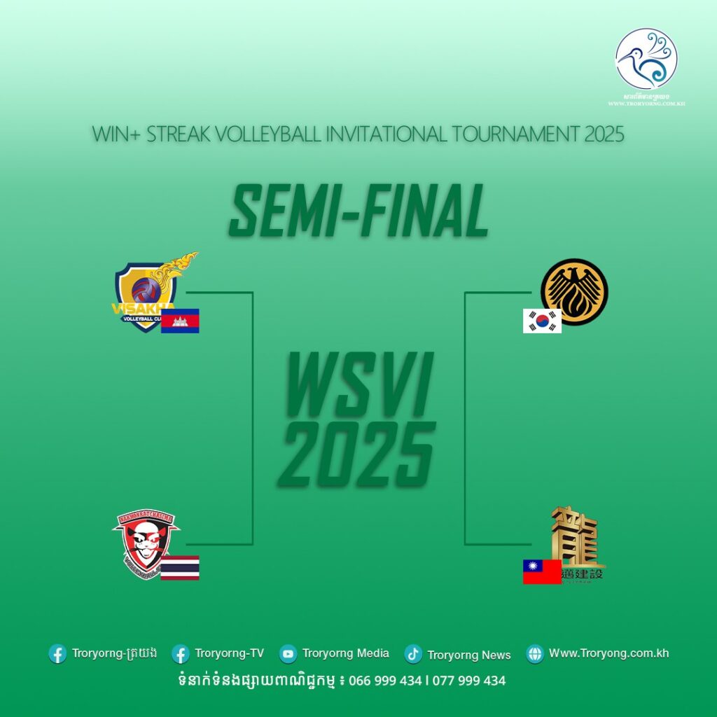 សូមជម្រាបថា ព្រឹត្តិការណ៍ពានរង្វាន់ Win+Streak Volleyball Invitational Tournament ឆ្នាំ២០២៥ មានសមាជិកក្លិបចំនួន ៨ក្រុម បែងចែកជា ២ពូល ក្នុង១ពូល មាន៤ក្រុម ប្រកួតយកក្រុមលេខ១ និងលេខ២ឡើងទៅប្រកួតវគ្គពាក់កណ្តាលផ្តាច់ព្រ័ត្រ និងវគ្គផ្តាច់ព្រ័ត្រ ខណៈកម្មវិធីប្រកួតបានចាប់ផ្តើមកាលពីថ្ងៃទី៣០ ខែមេសា និងបានបិទបញ្ចប់ទៅវិញនៅថ្ងៃទី៤ ខែឧសភា ឆ្នាំ២០២៥ នៅកោះតៃវ៉ាន់។