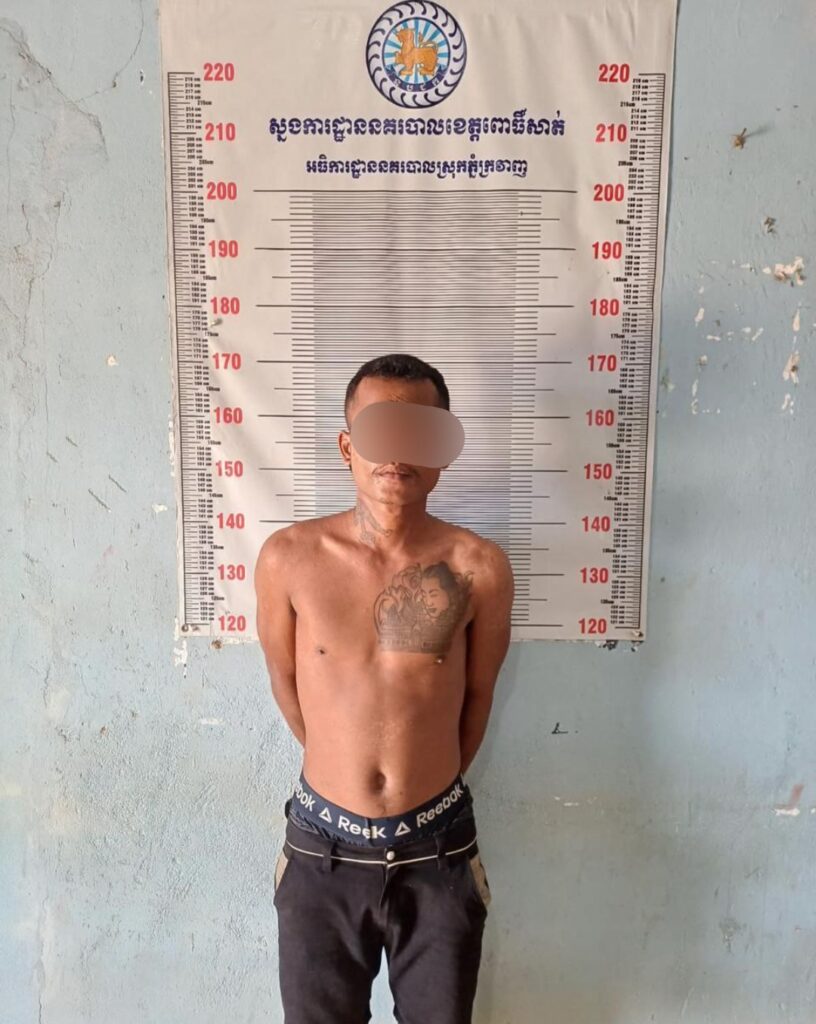 ភ្នំក្រវាញ: សមត្ថកិច្ចនគរបាលស្រុកភ្នំក្រវាញ ខេត្តពោធិ៍សាត់ បានចាប់ខ្លួនជនសង្ស័យម្នាក់កាលពីវេលាម៉ោង 2:30 រសៀល ថ្ងៃទី 22 ខែឧសភា ឆ្នាំ 2025 បន្ទាប់ពីគេបានប្រើដាវវាយកាប់ស្ត្រីម្នាក់ បណ្ដាលឲ្យរងរបួសធ្ងន់។