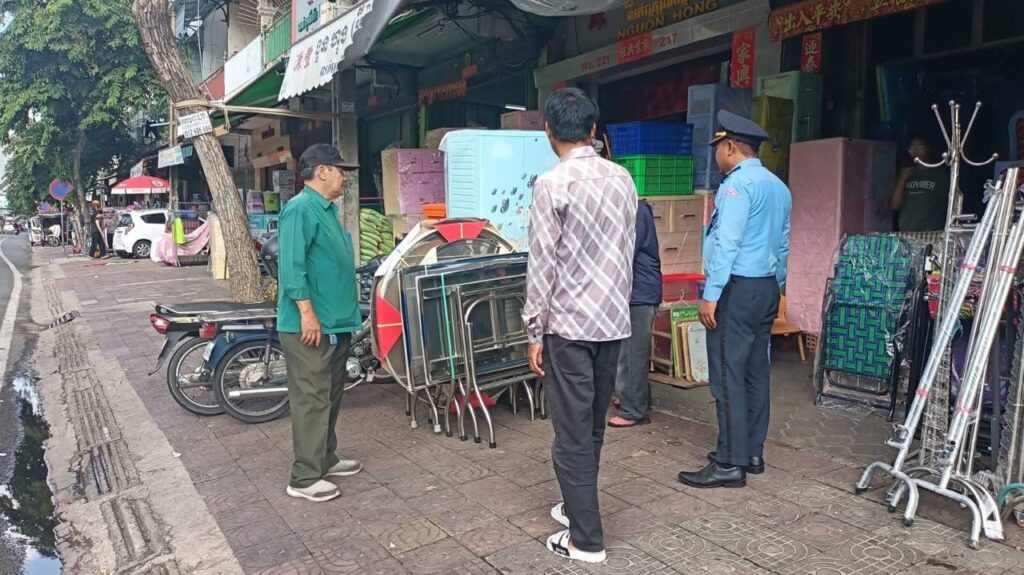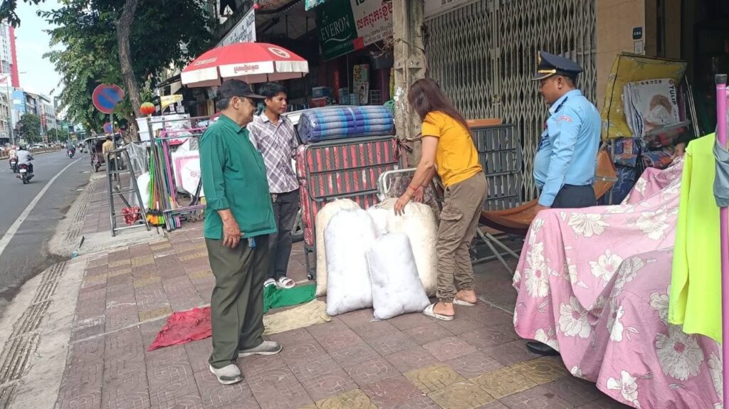 ភ្នំពេញ ៖ នៅតាមចិញ្ចើមផ្លូវសាធារណៈ ពិសេសផ្លូវសម្រាប់អ្នកថ្មើរជើង ត្រូវបានបងប្អូនអ្នកលក់ដូរ តាមផ្ទះ ហាង មួយចំនួន យកធ្វើជាកន្លែងដាក់តាំងរបស់របស់លក់ដូរ ធ្វើឱ្យបាត់នូវសណ្តាប់ធ្នាប់ ទើបនៅថ្ងៃទី០៤ ខែមិថុនា ឆ្នាំ២០២៥នេះ កម្លាំងនគរបាលខណ្ឌ៧មករា សហការជាមួយកម្លាំងគណៈបញ្ជាការឯកភាពរដ្ឋបាលខណ្ឌ៧មករា ចុះរៀបចំសណ្តាប់ធ្នាប់តាមបណ្ដោយផ្លូវលេខ១៦៤, ១៣៩ និងផ្លូវ២១៧ ឱ្យមានសណ្តាប់ធ្នាប់ឡើងវិញ ។