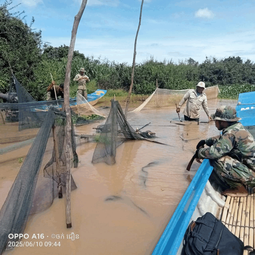 កម្លាំងជំនាញចម្រុះ បានចុះរុះរើបំផ្លាញចោលឧបករណ៍នេសាទខុសច្បាប់នៅនឹងកន្លែងរួមមាន÷ របាំងស្បៃមុងចំនួន២៧របាំងប្រវែង១៣០០ម៉ែត្រ ទ្បុកចំនួន៥៤គ្រឿង លូ៥៤មាត់ បង្គោលចំនួន៥៥០ដើម