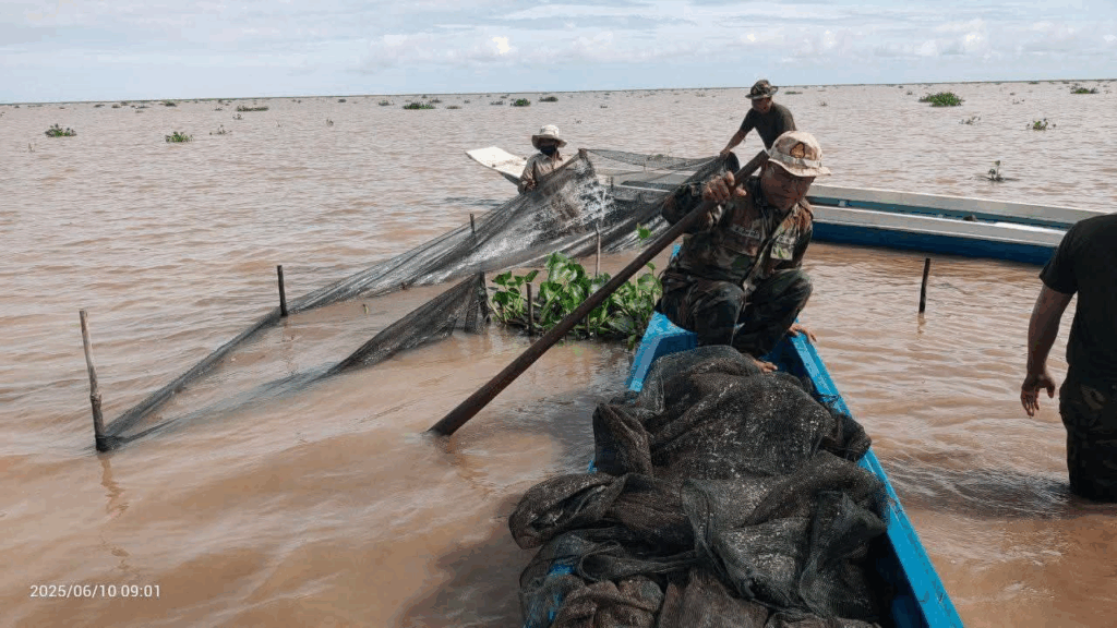 ហើយជាលទ្ឋផលអនុវត្តបាន០២ករណី បានរុះរើកាប់បំផ្លាញចោលឧបករណ៍នេសាទខុសច្បាប់របាំងស្បៃមុង និងរបាំងសាច់អួនក្រឡាញឹកនៅនឹងកន្លែងរួមមមាន÷ របាំងស្បៃមុងចំនួន៨របាំងប្រវែង២២៤០ម៉ែត្រ របាំងសាច់អួនក្រឡាញឹកចំនួន៩របាំងប្រវែង៥៩០ម ឡុកចំនួន១៧គ្រឿង លូចំនួន២៦មាត់បង្គោលឈើចំនួន១០២០ដើម៕