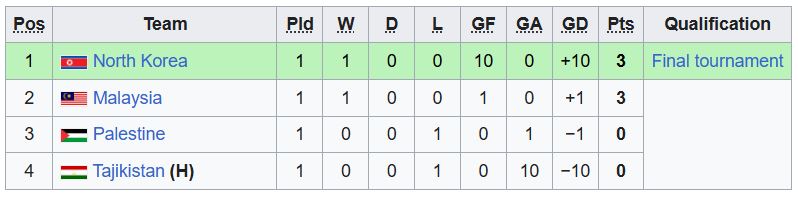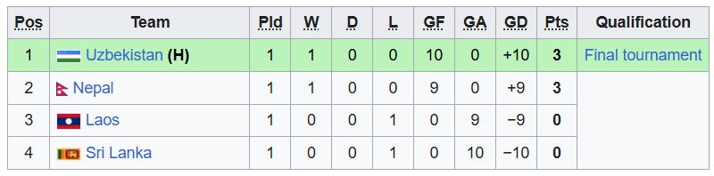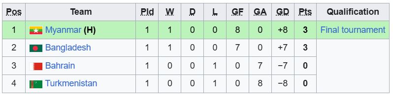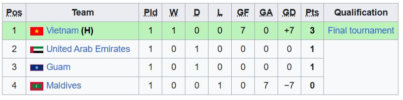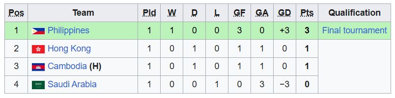 នេះគឺជាតារាងចំណាត់ថ្នាក់តាមពូល ទាំង ៧ ពីពូល B ដល់ពូល H ក្រោយឆ្លងកាត់បាន ១ប្រកួត៖